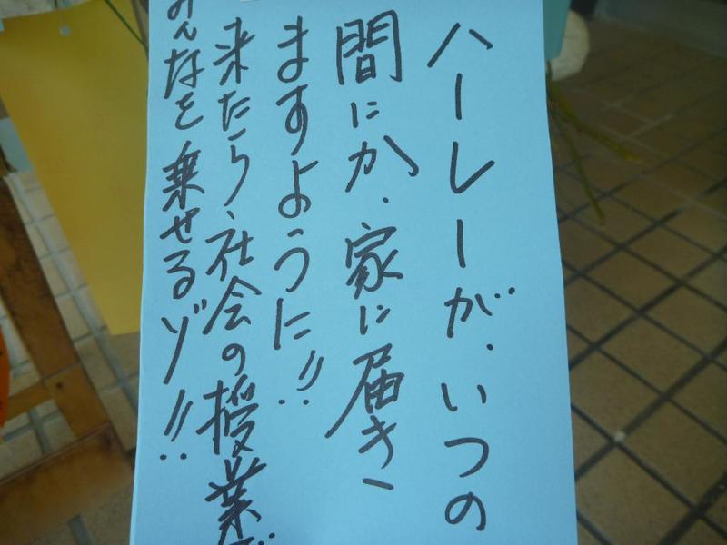 「2学期は部活動を頑張りたい」 「1日1日を大切にしたい」 おやっ、講堂の軒先に、何かぶら下がってます