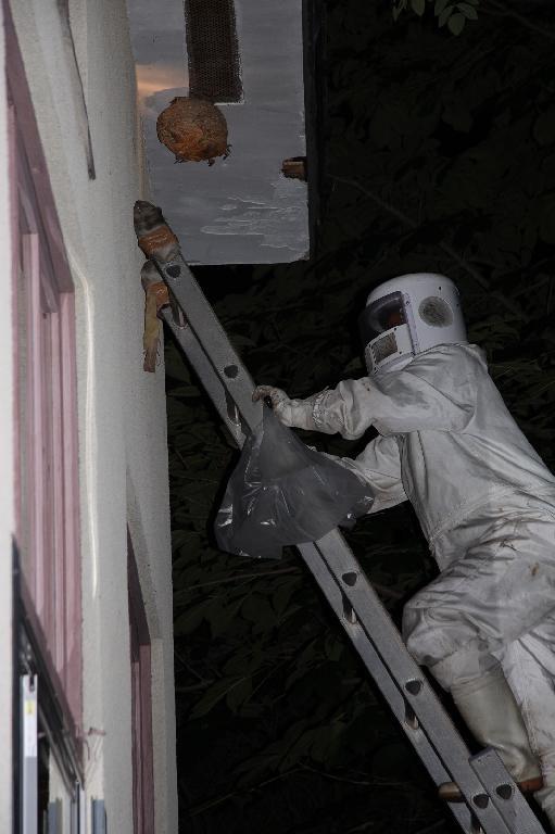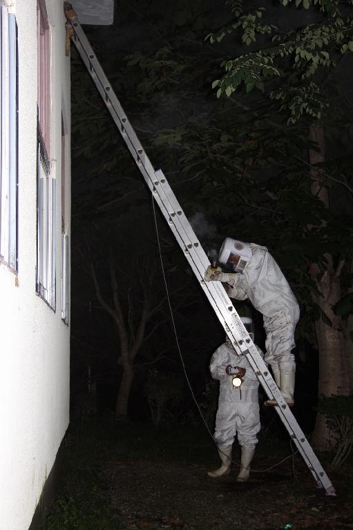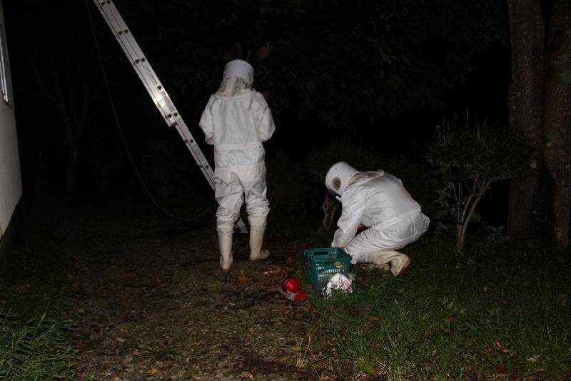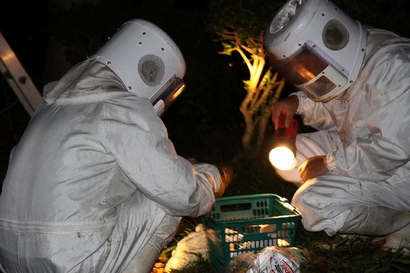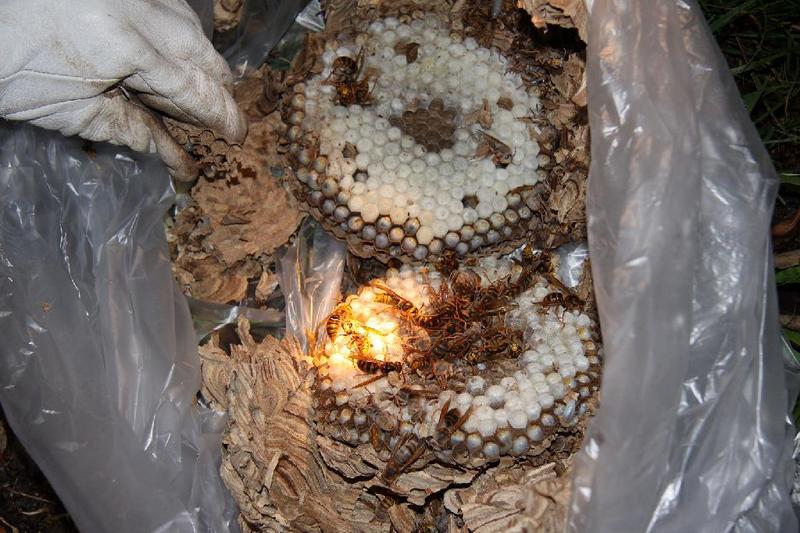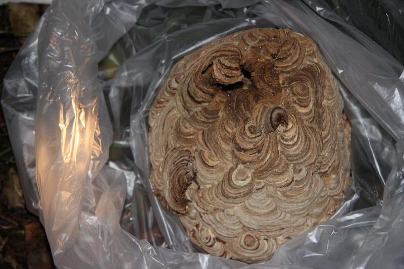 袋を持って逆襲「仇はとってやるぞ」「19:40 蜂の巣確保しましました」 直径やく35cm