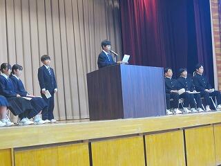 次期生徒会役員に12名の生徒が立候補し、立会演説会が開かれました。