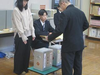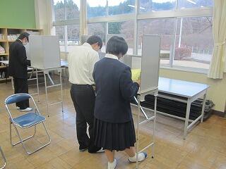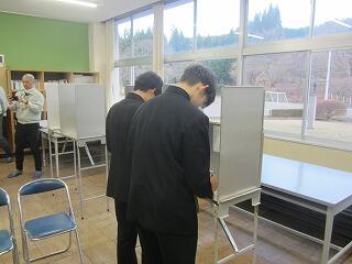 その後、実際の選挙で使用されている記載台や投票箱を使用し、本番さながらの会場で投票を実施しました。