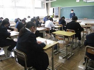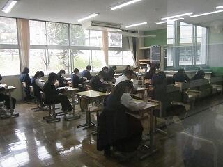 本日は、3年生が全国学力学習状況調査、2年生がとちぎっ子学習状況調査、1年生がNRT標準学力検査に取り組んでいます。どの学級も集中して問題と向かい合う生徒の姿が見られました。