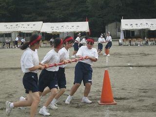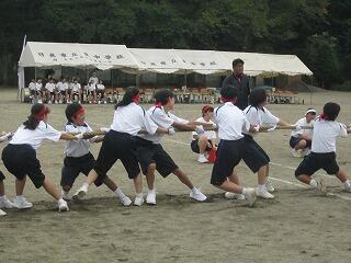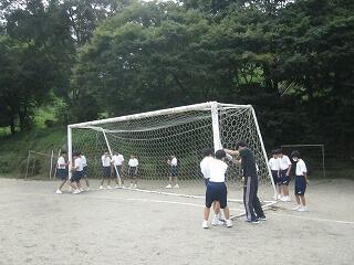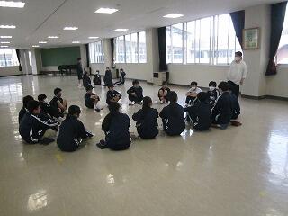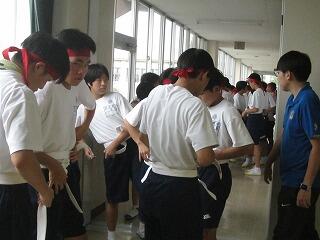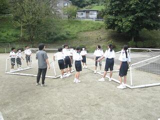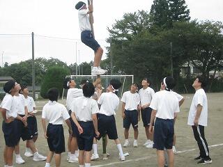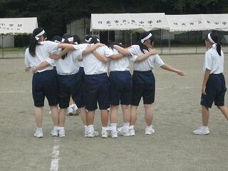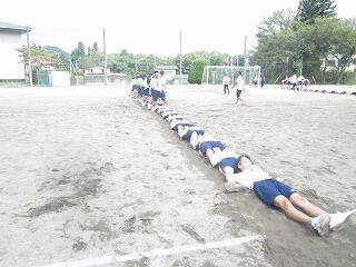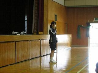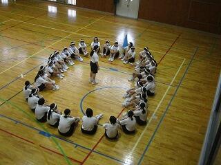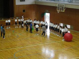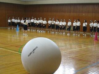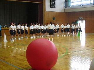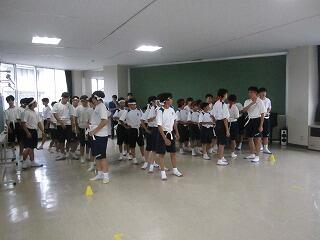 午後になって雨は上がりましたが、校庭がぬかるんでいるため、男女それぞれの団体種目の練習を室内で行いました。