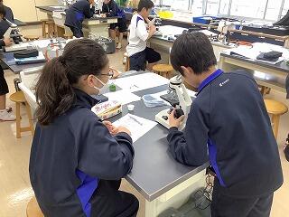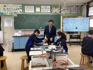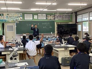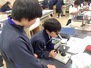 本日は、理科の外部講師として國廣俊二先生にご来校いただき、國廣先生が培養されたミドリムシ(ユーグレナ)を1年生が顕微鏡を使って観察しました。