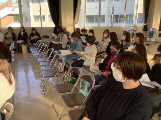 聴覚の不自由な方の生活とはどんなものか学習した後、筆談や身振り手振りなど聴覚の不自由な方とコミュニケーションをとる手段の一つとして手話や指文字などをご指導いただきました。