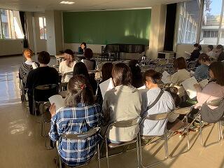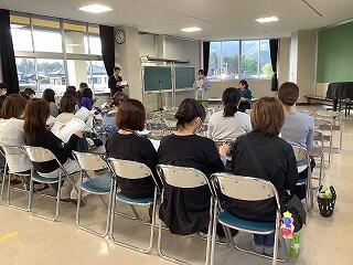 生徒たちの生命を守るため、職員もいつもに増して真剣な表情で研修に取り組んでいました。