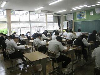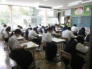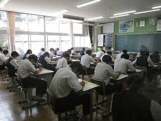 3年生が実力テストに臨んでいます。夏休み中の頑張りが報われるよう、それぞれの目指す結果が得られることを期待します。