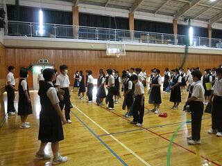 3年生の実力テストに続き、放課後には福祉委員会の生徒による学校周辺のボランティア清掃が行われ、また、運動会に向けた応援団の練習も始まりました。