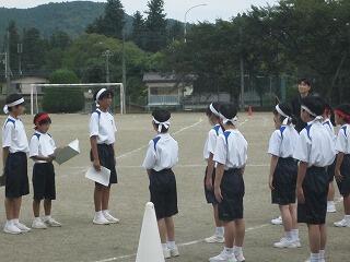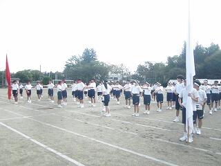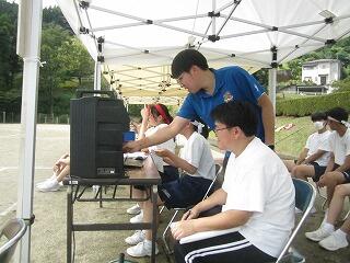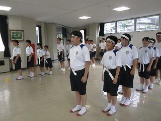 今日は、全体で開・閉会式の入退場、ラジオ体操の隊形や進行の段取りなどの確認をしました。