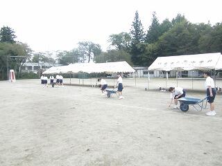 午後からの天気の崩れが心配されたため、急遽時間割を入れ替え、運動会前日準備を行いました。