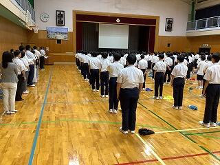 明日からの夏休みがすべての生徒にとって有意義なものとなるよう、健康と安全に留意して過ごすよう指導いたしましたので、各家庭におかれましてもご配慮いただきますよう、よろしくお願いいたします。