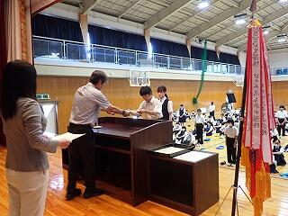 式の前には、これまでの各種大会等で受賞した表彰状の伝達を行いました。生徒たちの頑張りにより、想定よりずっと長い時間を要しました。