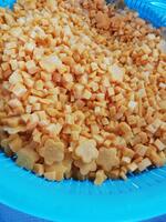火が通りやすいようにコロコロッと切った里芋を、しょうが・にんにく・酒・醤油の調味液に浸し、