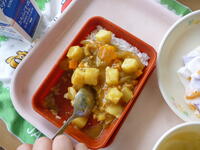 カレーの中に入れたので、宝探しのように目を輝かせながら探す子供達。