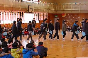 1年生を中心とした下級生が6年生に手渡ししましたが,こうしてみると,