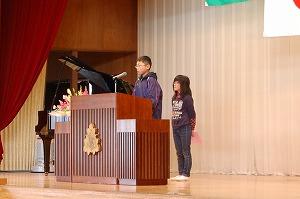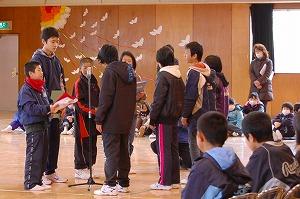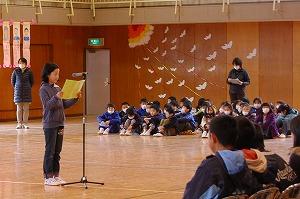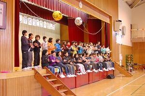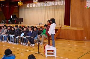 低学年,中学年,5年生に分かれて歌のプレゼントとお礼の呼びかけがありました。