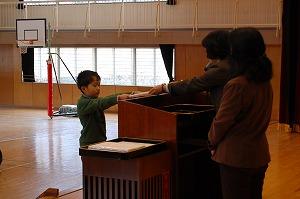 各クラスの代表が,校長先生から修了証書をいただきました。