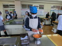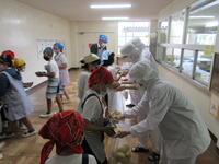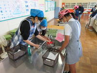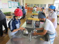 6年生は給食を作る苦労や衛生への配慮を知り、今まで以上に給食のありがたさ、