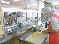 なかなか授業中で見ることが出来ない調理の様子を見学しました。