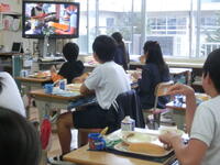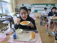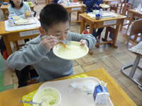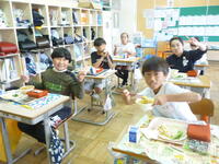給食時間、みんなにこにこ顔で給食を味わっていました♪