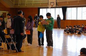 下級生から6年生へ合奏のプレゼントと6年生一人一人への感謝のメッセージです。