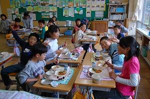 おうちの方が来るのを楽しみに待っていた子ども達。今日の給食は,パン,焼きそば,昆布サラダ,ヨーグルト,牛乳。