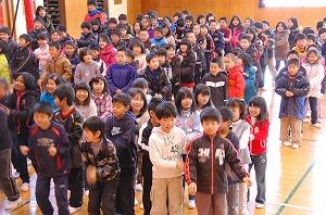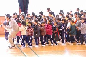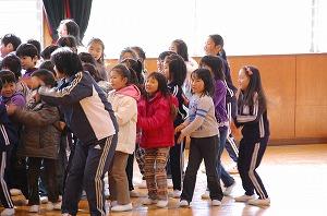 今日は体育館に全校児童が集まって,「ふれあい広場」を行いました。