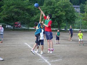まずは,3年生と4年生の対決。4年生はかごが高くなっています。
