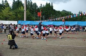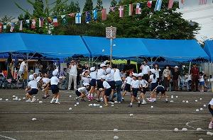 最後は2年生と6年2組の対決。6年生は軽いピンポン球でやりました。