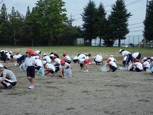 9月3日の月曜日にPTAの環境整備が実施されました。台風が接近してくる中,天候も心配されましたが,予定どおり実施できました。101名というたくさんの保護者の方と11名のクリーン隊の方の御協力をいただき,児童も一生懸命はたらき,学校の校庭がきれいになりました。運動会の退場門も設置され,運動会への気持ちが盛り上がってきました。御協力ありがとうございました。