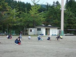 陸上大会のために校庭をならします