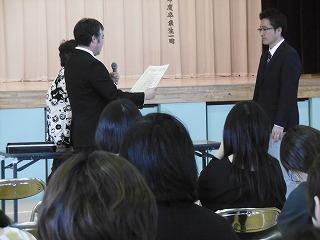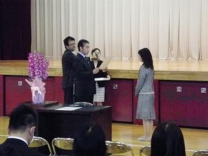 (前PTA会長Y.I様へ、M.Y新会長より感謝状贈呈)