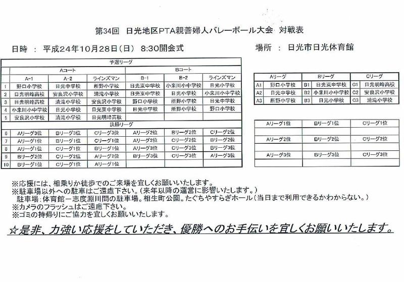 第34回「日光地区PTA親善婦人バレーボール大会」のお知らせです。