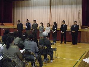 (PTA総会の様子:新旧役員あいさつ)