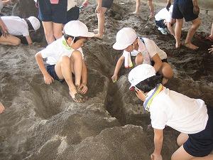 お昼の後は、外で思いっきり遊びました。みんな汗びっしょりで走り回っていました。