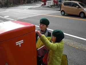 準備しておいたはがきに切手を貼って、いざポストへ。