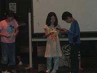 下級生が、もみの木班の6年生に感謝のメッセージを一人一人手渡しました。