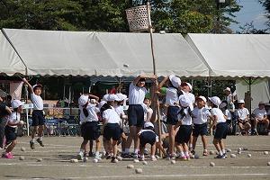 一生懸命ジャンプして玉を投げる子どもたちの頑張りが見られました。