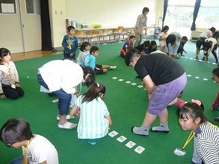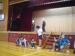 体育館で行いました。その班も協力し合ってがんばっていました。