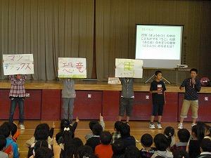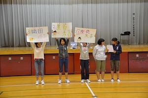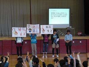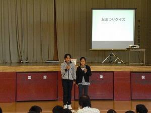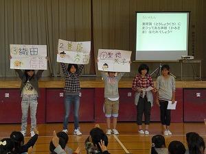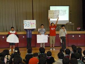 「6年生の好きな給食は何でしょう。」「6年生が学校で好きな場所はどこでしょう。」といったクイズが出題されました。