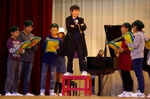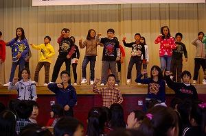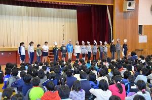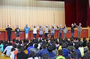6年生の成長を振り返る「思い出のアルバム」をスクリーンで見た後は、下級生から6年生へ歌のプレゼントをしました。