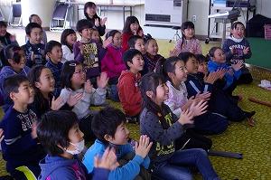 臨場感あふれる読み聞かせとのコラボレーション           3年生も一緒に演奏してみました。