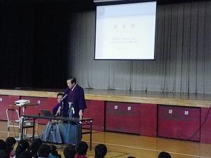 先生に英語で自己紹介もしました。自分の名前を「My name is~.」と言うことができて立派でした。