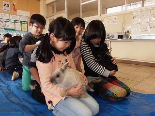今日は,1年生の教室にうさぎさんが遊びに来ました!