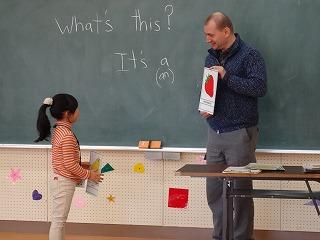のように,子どもたちは果物の絵を見て,英語で答える練習をしました。