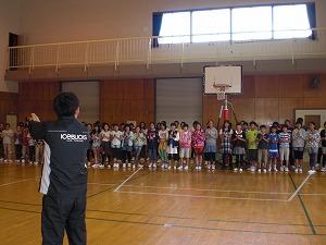 体育委員会が司会進行を担当。校長先生のお話、代表児童のあいさつのあと、
