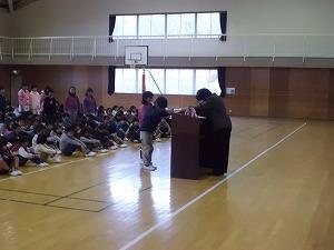 各学年の代表の子が、校長先生から修了証書をいただきました。