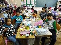 ミシンボランティアのお母さん達のおかげで,初心者の5年生も上手にミシンがかけられました。