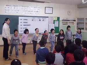 19日(月)5時間目に1・2組合同で英語活動を行いました。ハロウィン♪の授業ということで,