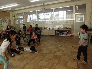 いつもと違う暗いもみの木ルームの雰囲気や,ホッペ先生・石持先生の仮装姿に子供たちは