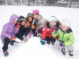 雪がちらつく寒い中でしたが、子どもたちは寒さに負けず